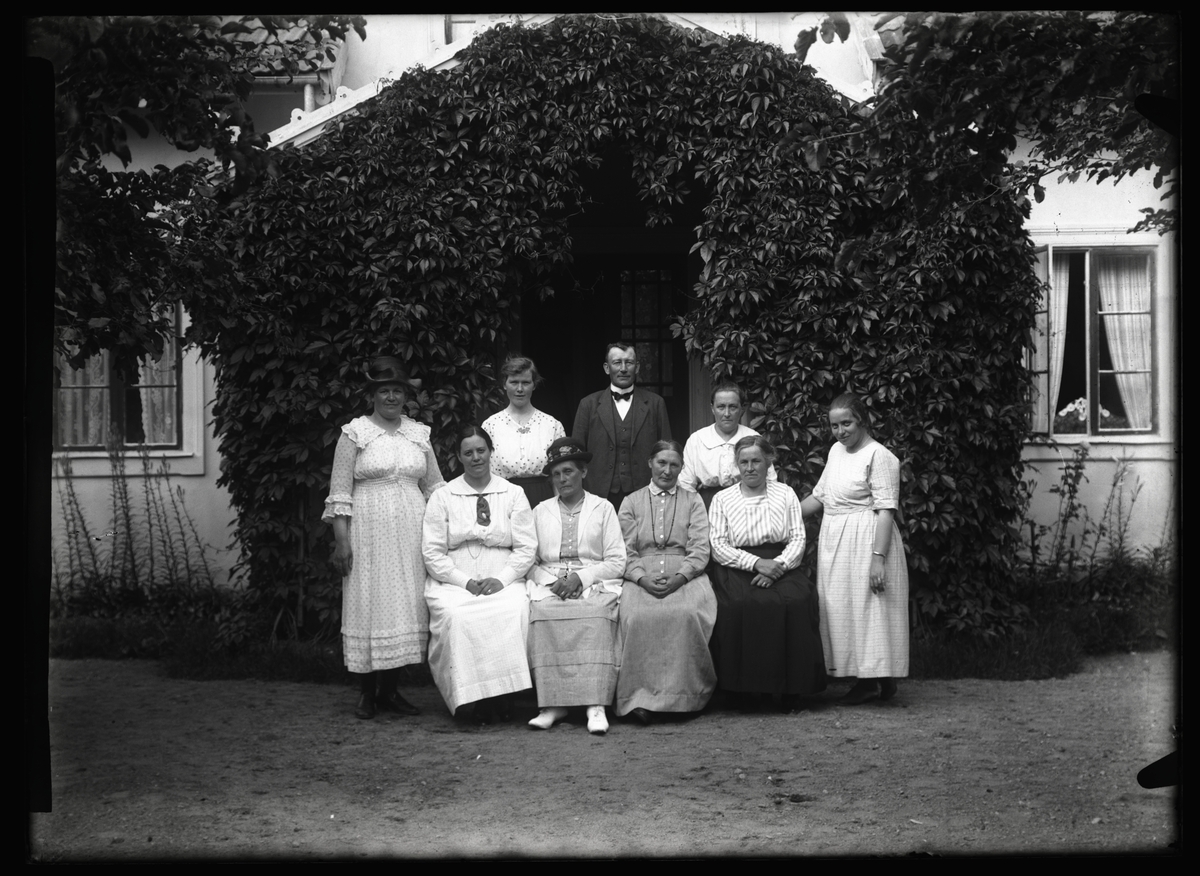 Familj framför hus