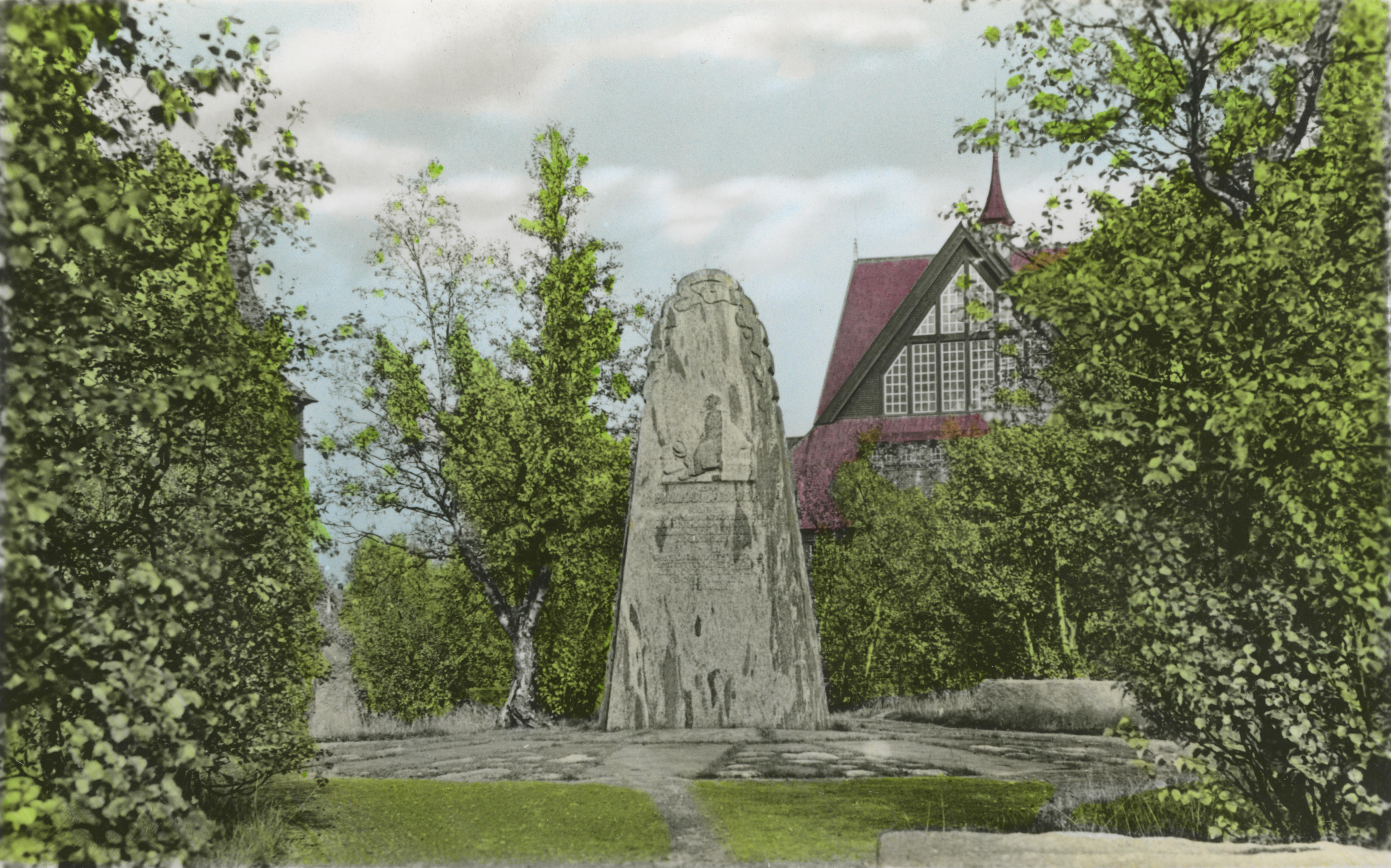 Hjalmar Lundbohms grav vid Kiruna kyrka. Handkolorerad variant av ac00977.