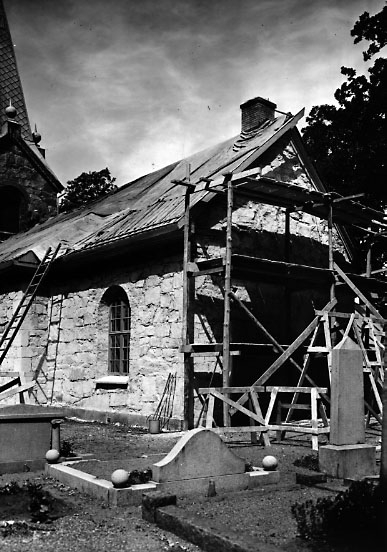Kyrkan av sten med smalare långsträckt kor härrör möjligen från ca 1200. Tornet av tuktad granit byggdes 1884. Altaruppsatsen härrör från1600-talets senare del. Dopfunten från 1100-talet samt några träskulpturer från ett altarskåp från 1400-talet har bevarats.