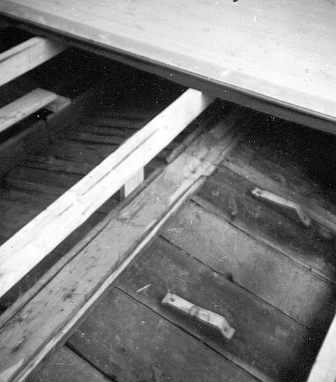 Manbyggnaden under restaurering, gamla innertaket i södra vindsgavelrummet.