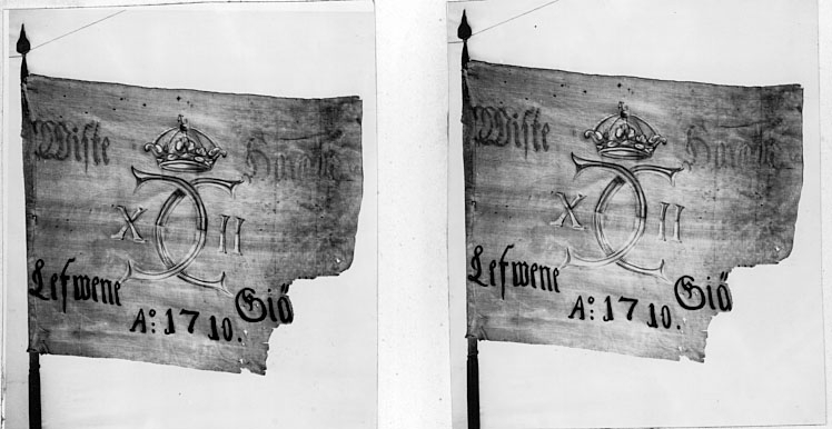 Mönstringsfana för för Levene pastorat daterad 1710.