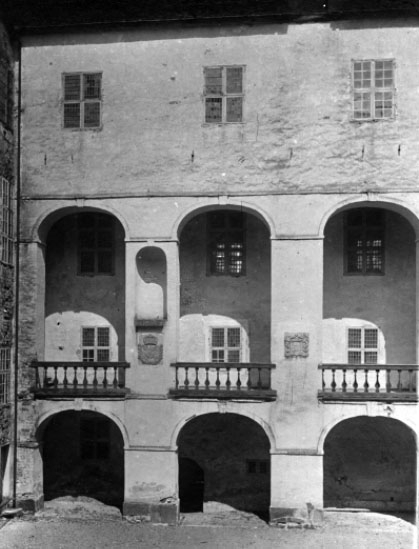 LOGGIA= Åt en eller flera sidor öppen av kolonner eller pelare uppburen välvd hall, utbyggd framför eller infogad i en byggnad.