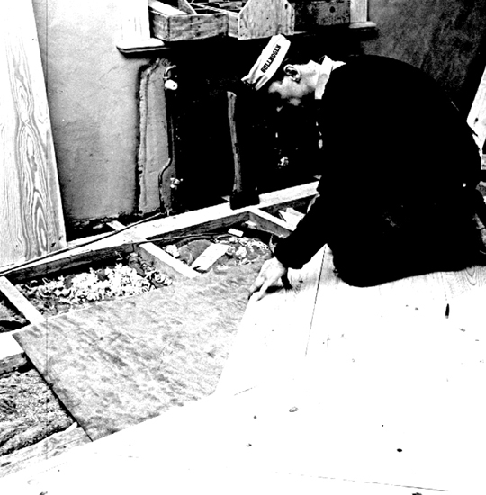 Läggning av golv i Kråks flygel 14/3 1967.