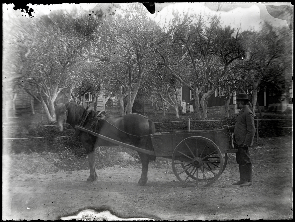 Johan Ludvig Olsson med hästkärra i trädgården på Herrängen