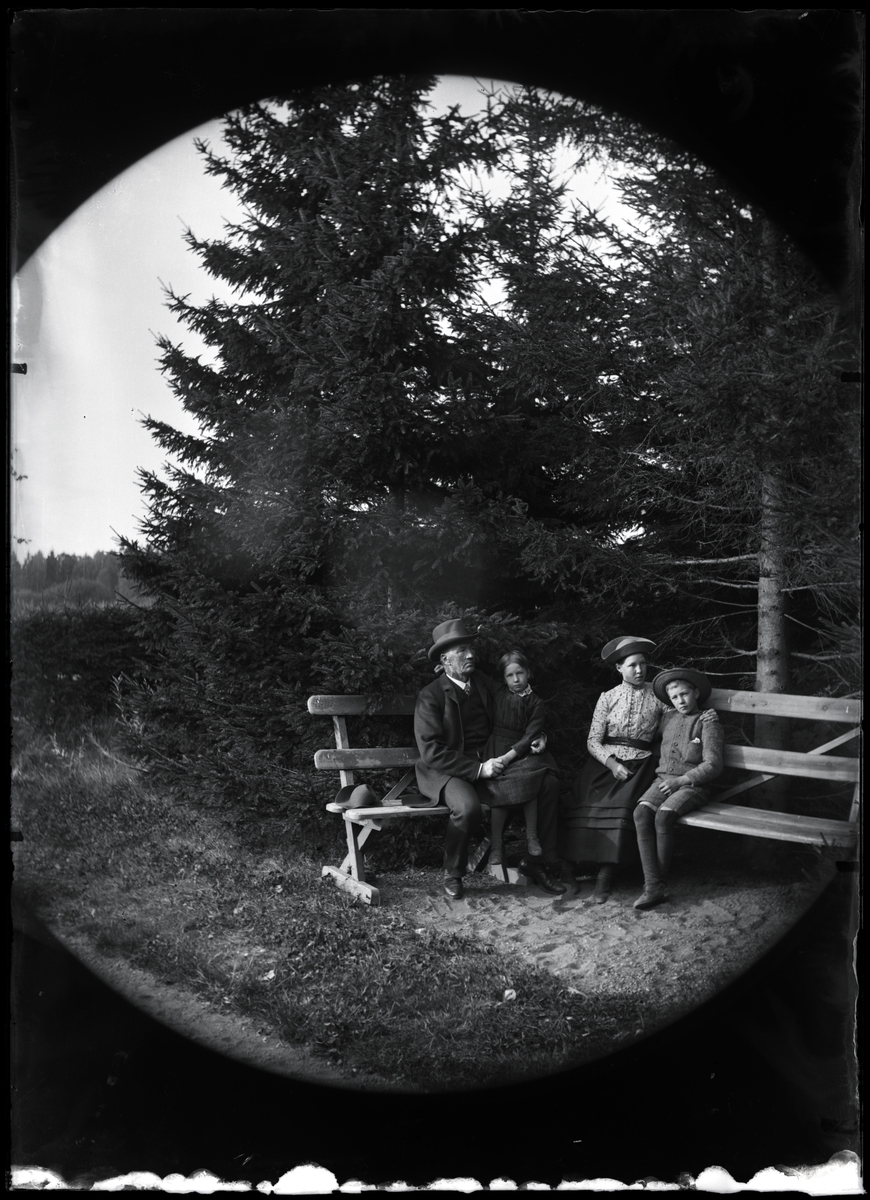 Familj på parkbänk