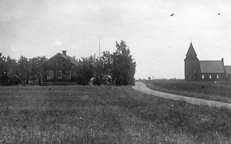 Den nationalromantiskt inspirerade granitkyrkan med torn och smalare kor byggdes 1915 efter Ivar Tengboms ritningar.