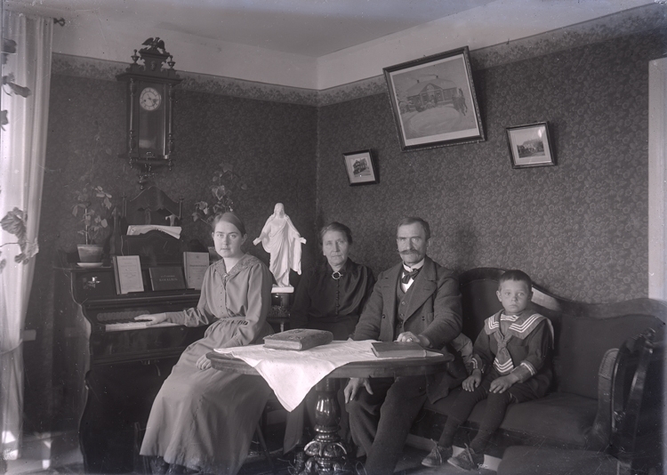 FRANS ANDERSSON MED FAMILJ SITTER FRAMFÖR ORGELN I FINRUMMET.