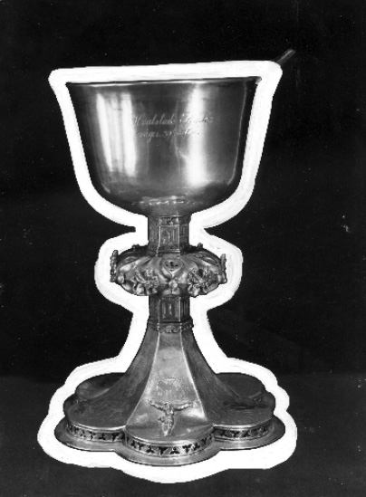 Nattvardskalk, utställd på Göteborgsutställningen 1923 med katalog.nr 890. Kalken daterad till omkring 1500.