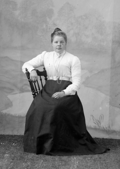 Dam sittande på stol.