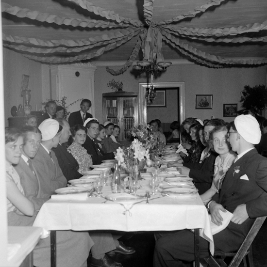 Studentmiddag hos Agnes Carlsson, Skolgatan, 1952.