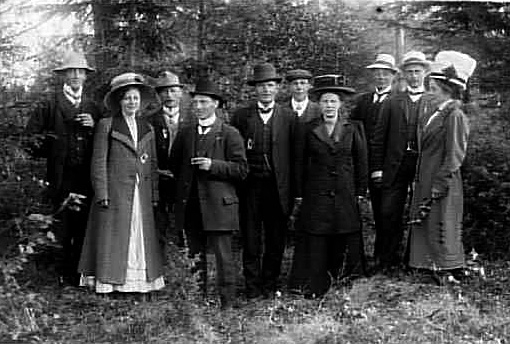 GRUPP UPPSTÄLLD I SKOGSPARTI