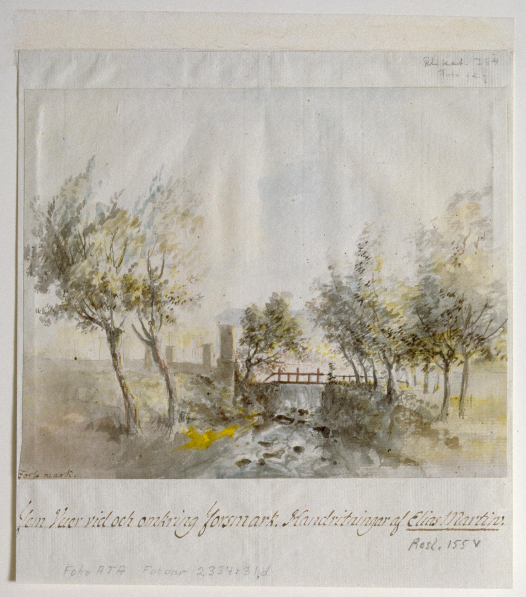 I Forsmarks omgivningar. Akvarell av Elias Martin.