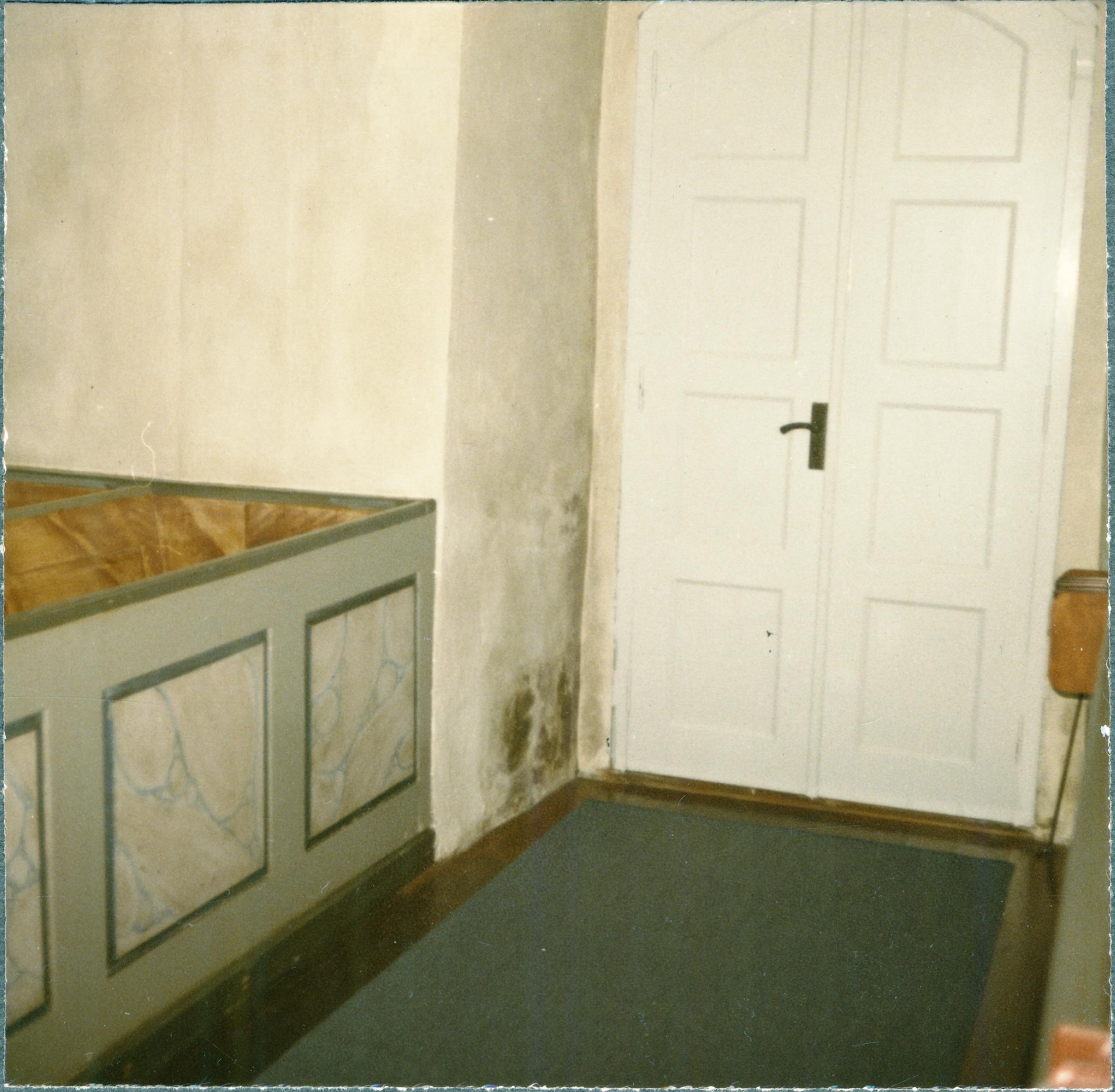 Dörren mellan långhus och sakristia, sedd från långhuset.
