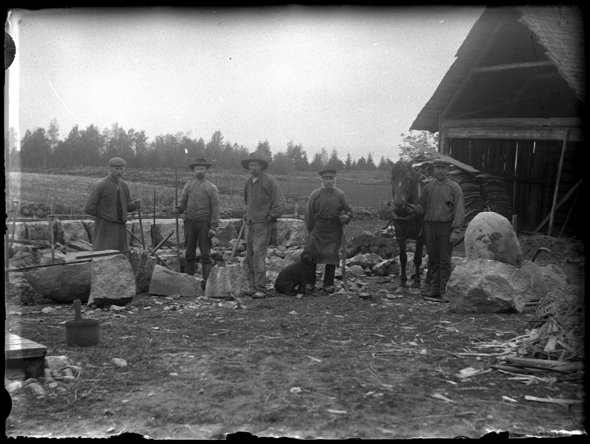 Stenhuggare formar grundstenar till bygge i Vallsjöbol