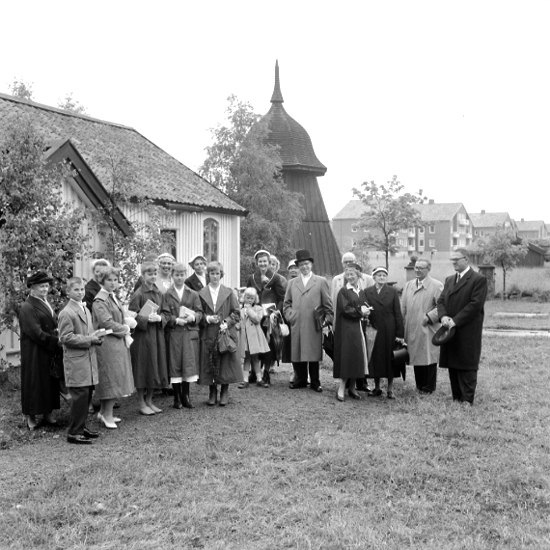 Konfirmander och anhöriga vid Härjevadskyrkan 1958.