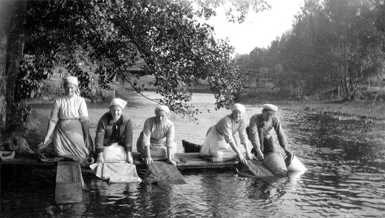 Sköljning i Hornborgaån, nära Bosgårds bro.