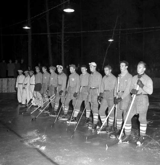 Titel: Skara. Ishockey: Invigning av Petersburgsbanan 1953.