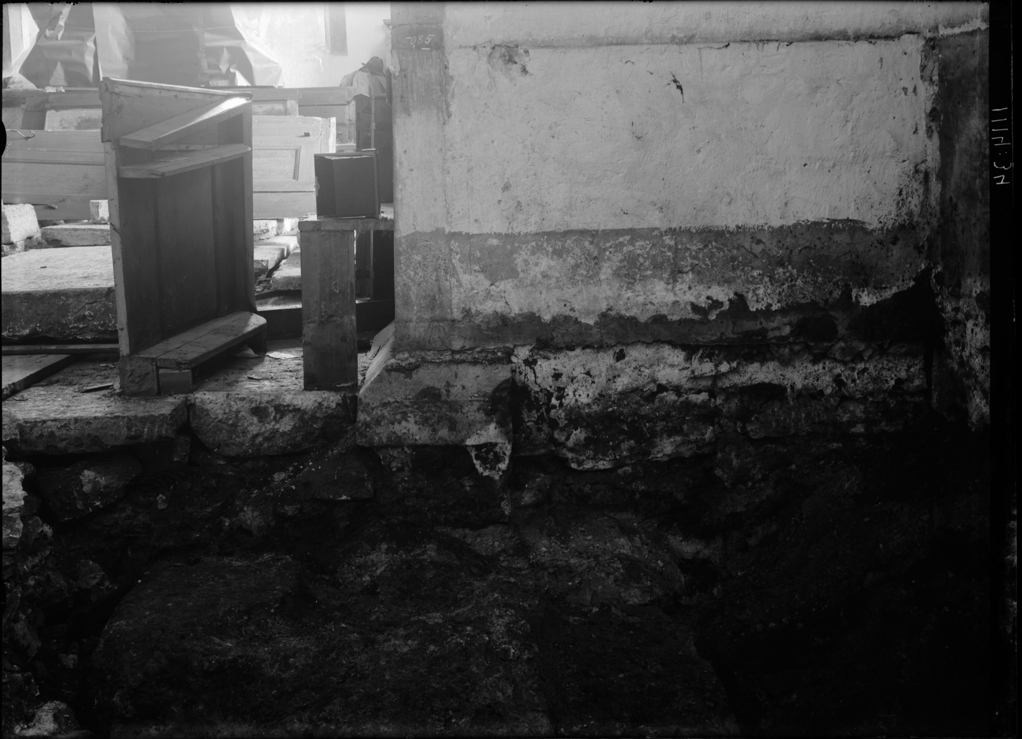 Södra triumfbågsstödet från väster med den avbrutna sockeln.