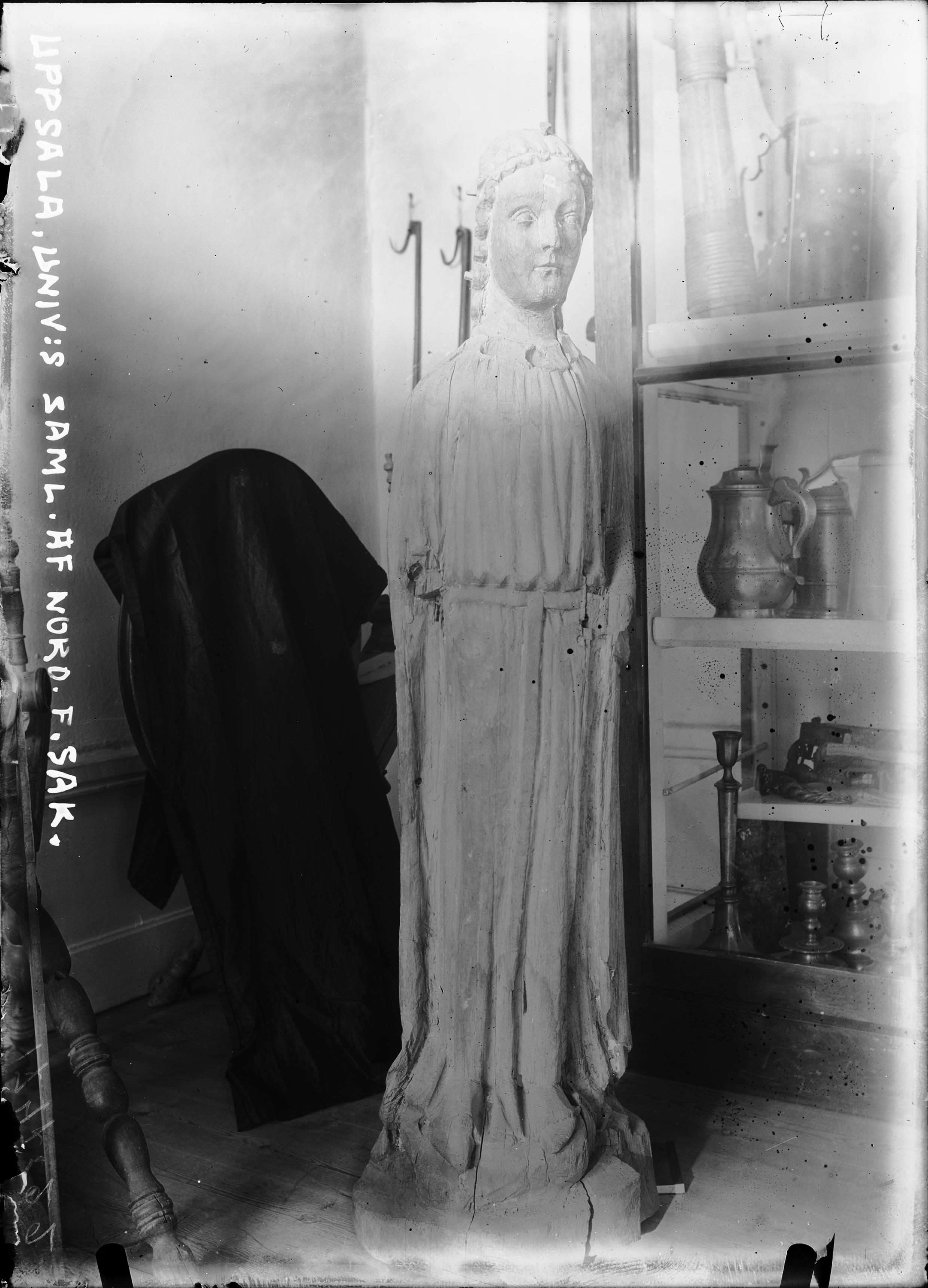 Skulptur, ek, kvinnligt helgon, 1200-talet.
