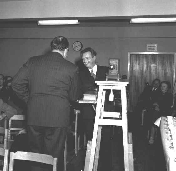Titel: Skara. Skara fotoklubb möte hos Jarls konditori (1950?), prisutdelning.