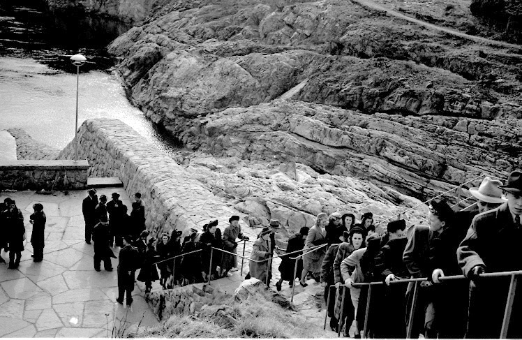 Skara köpmannaförenings ungdomsavdelning på utflykt till Trollhättan 1947.