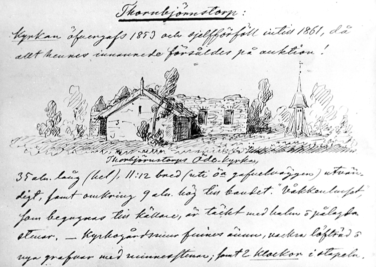 Kyrkan öfvergafs 1853 o sjelfförföll intill 1866, då allt hennes innanrede försåldes på auktion!