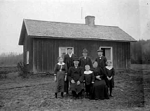 EN FAMILJ SAMLAD FRAMFÖR SITT BOSTADSHUS.