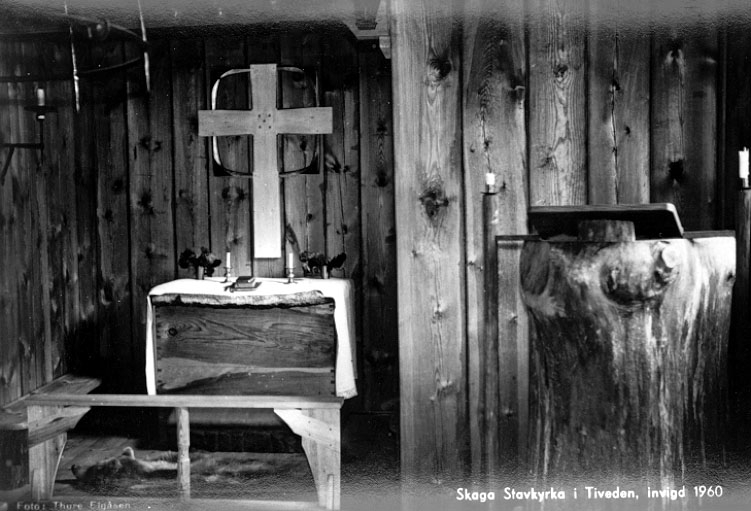 Den stora treskeppiga nygotiska korskyrkan med torn och tresidigt kor byggdes 1892-94 sedan den föregående medeltida träkyrkan brunnit. Skaga medeltida stavkyrka, riven 1825, var en känd offerkyrka;