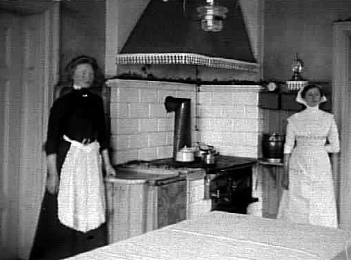 TVÅ KVINNOR PÅ VAR SIN SIDA AV JÄRNSPISEN.