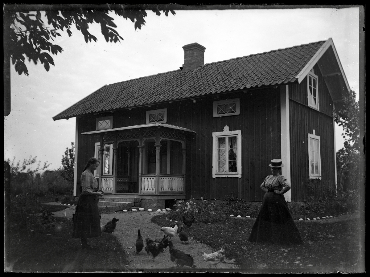 Kvinnor framför hus