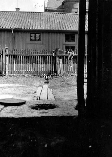 Lidköping. Kopparslagaregatan vid " Lönnerblads" Avloppstrumma över gatan.