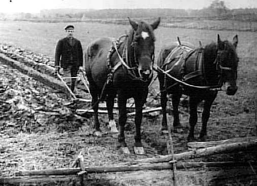 EN MAN SOM PLÖJER MED TVÅ HÄSTAR