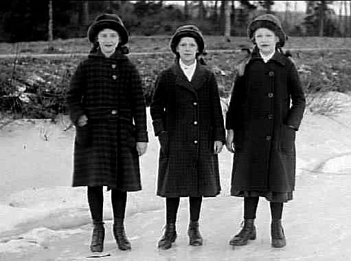 TRE FLICKOR I VINTERKLÄDER.