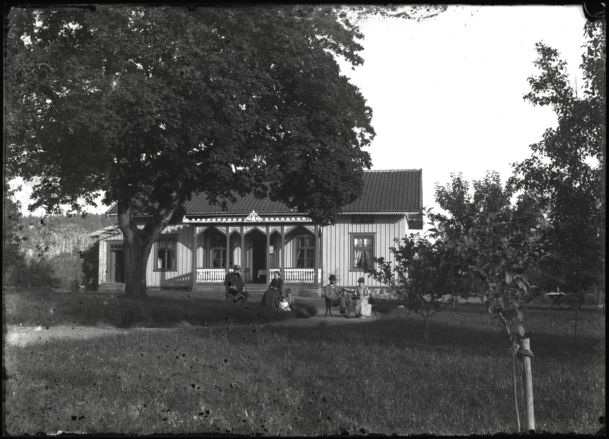Familj vid manbyggnad