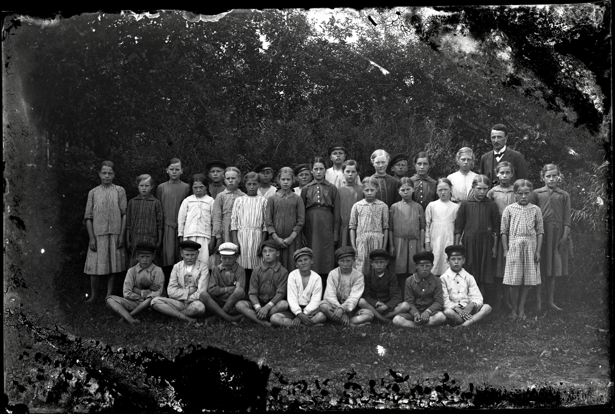 Folkskollärare Hilmer Johansson med skolklass