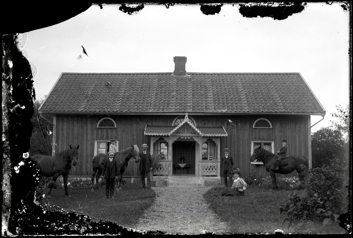 Familj framför bostadshus