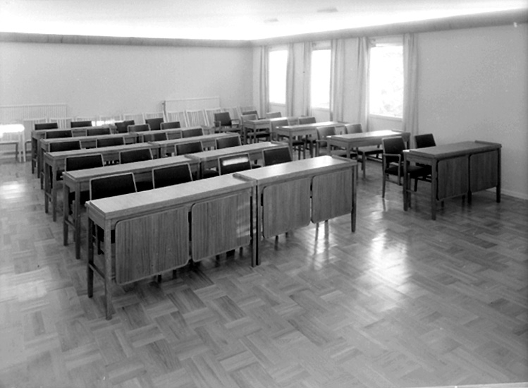 Kommunhuset i Ramsberg, interiör, sal med bänkar.