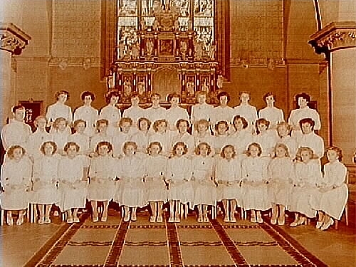 38 flickor och kyrkoadjunkt Karl Erik Hagberg. Folkskolans 7:de klasser.