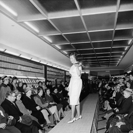 Titel: Oscarias nya affär, skoaffärsinteriör, modevisning.