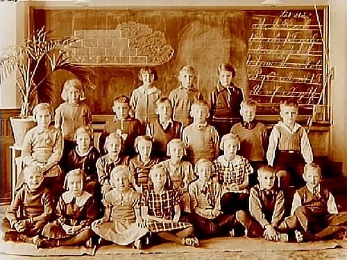 Engelbrektsskolan, klassrumsinteriör, 22 skolbarn med lärarinna Elsa Linderholm, klass 2, sal 16.