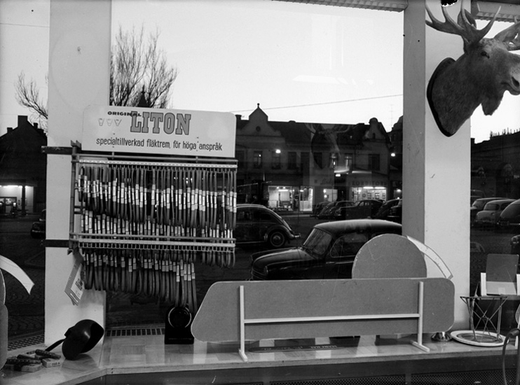 Titel: Allmotor AB, affärsinteriör med Liton fläktremmar. Motor Wallin