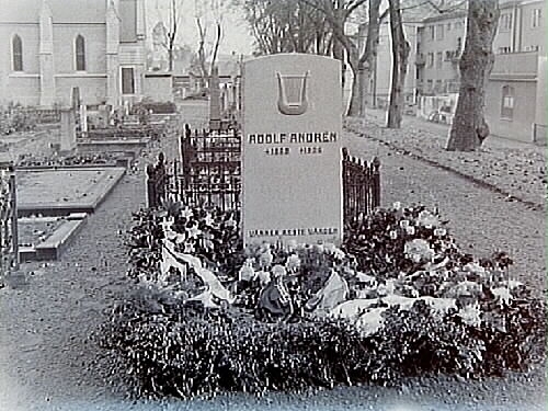 Olaus Petri kyrkogård, musikdirektör Adolf Andréns gravvård avtäckt den 22 oktober 1939.