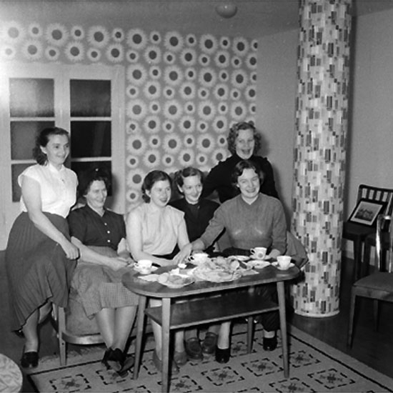 Rumsinteriör, grupp 6 kvinnor.
