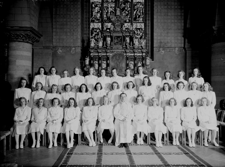 34 konfirmander, 34 flickor och pastor Lars-Erik Vesterström.