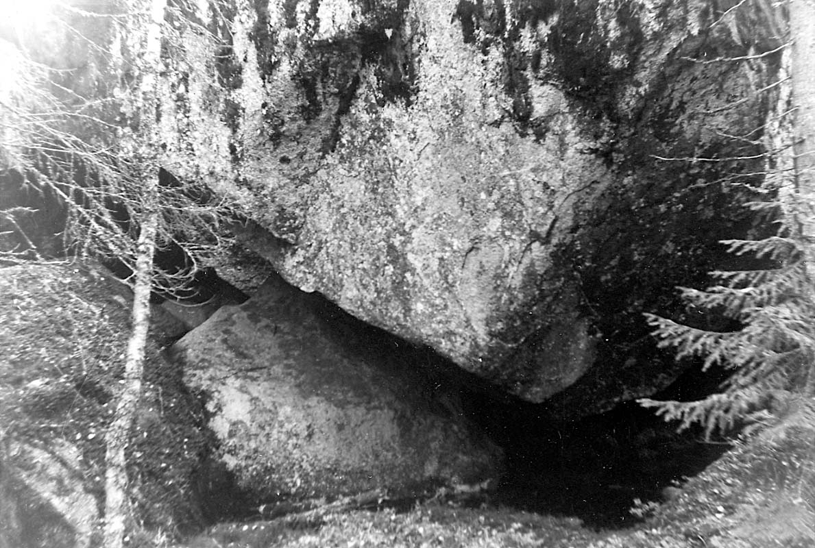 Väldigt flyttblock vilande på mindre block.
