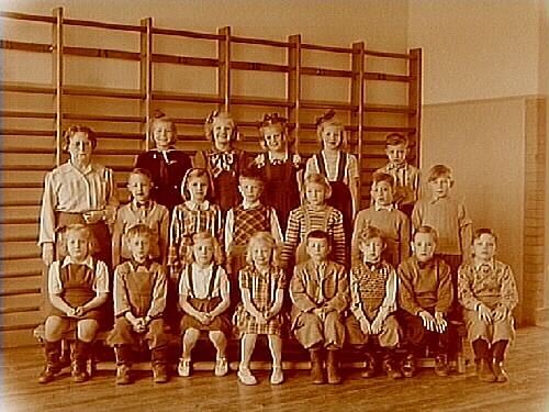 Engelbrektsskolan, klassrumsinteriör, 19 skolbarn med lärarinna fröken Elsa Lind, klass 2ac, sal 14-15-16.