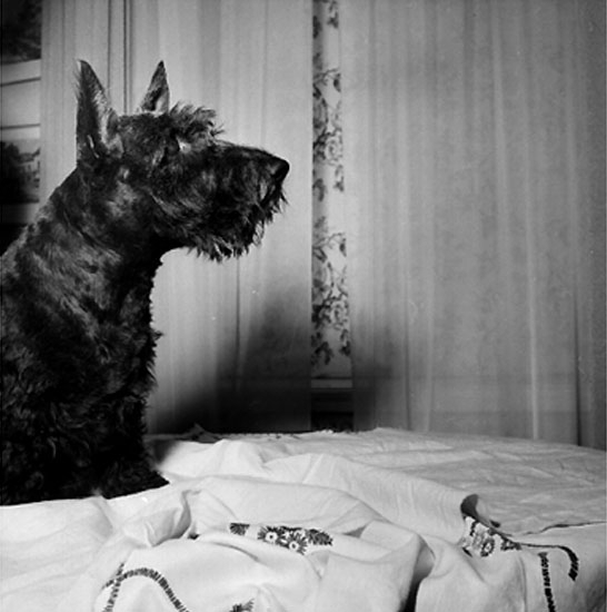 Rumsinteriör, en hund (tillhör familjen Beerwald).