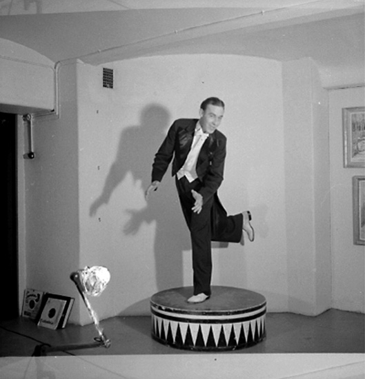 Interiör, en man, steppdansare.