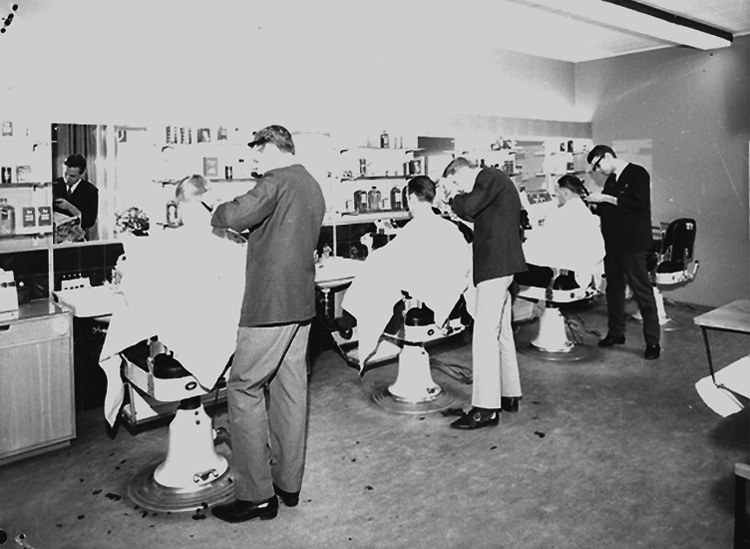 Domus herrfrisering, interiör, kunder och personal.