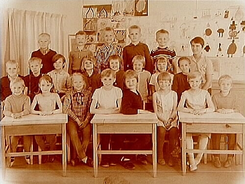 21 skolbarn och lärarinna fru Inger Gustavsson.